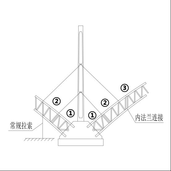 Innovation two: In response to the asymmetry and imbalance issues of the segments on the left and right sides of the middle pier during the construction of double-span or multi-span continuous arch bridges, a smart control method based on BeiDou satellite monitoring is proposed to balance the unbalanced forces at the middle pier. When installing a new segment, the tensioning of the locking cables is carried out immediately, and the intelligent control cable is used to ensure that the pier and the locking tower are in a balanced state. The construction method of using smart control cables to balance the middle pier ensures that the new segment is no longer in a cantilevered state, the flange is subjected to less force, and the change in locking cable tension is also small.
