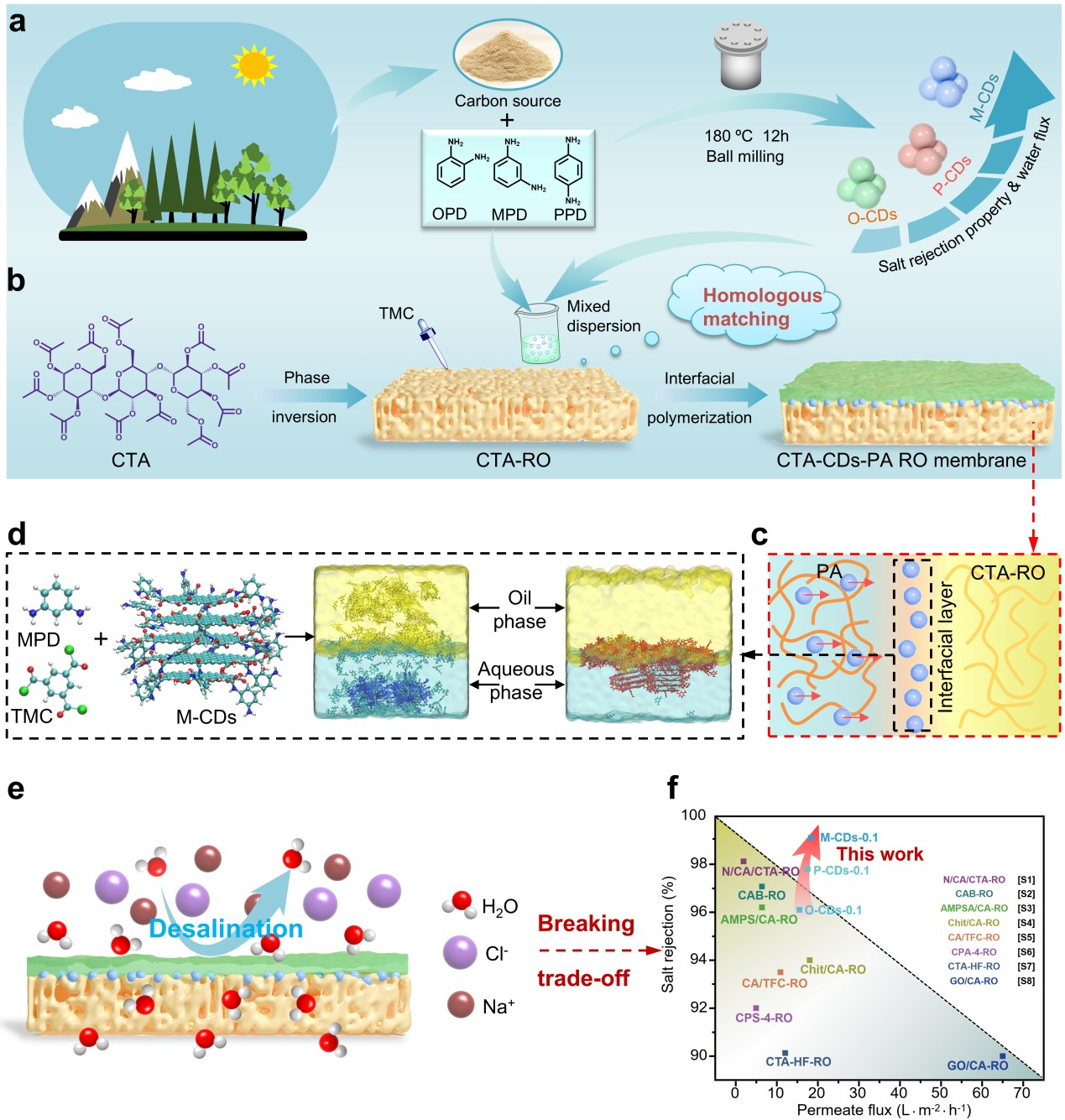 Amid the global freshwater crisis, developing high-performance separation membranes from biomass resources represents a key pathway toward both the high-value utilization of biomass and the sustainable advancement of membrane separation technologies. As an important biomass-derived material, cellulose triacetate has demonstrated significant potential in reverse osmosis desalination. However, like most membrane materials, it suffers from a fundamental scientific challenge: the intrinsic trade-off between permeability and selectivity. This “see-saw” relationship has long constrained the high-quality development and broader application of biomass-based membrane technologies.