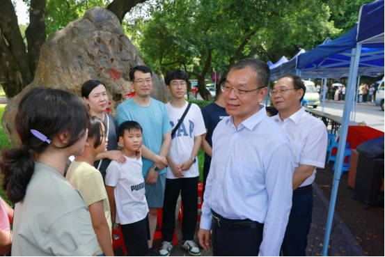 Party Secretary Li and President Han respectively led staff groups to inspect the freshmen welcoming activities at the centralized welcome site of the North Campus, Beiyuan Dining Hall, the South Gate, and the West Campus Gymnasium. The staff also visited new students in their dormitories. Vice President of GXU Yu Wenjin, who is also a member of the CPC GXU Committee Standing Committee, participated in the freshmen welcome activities.