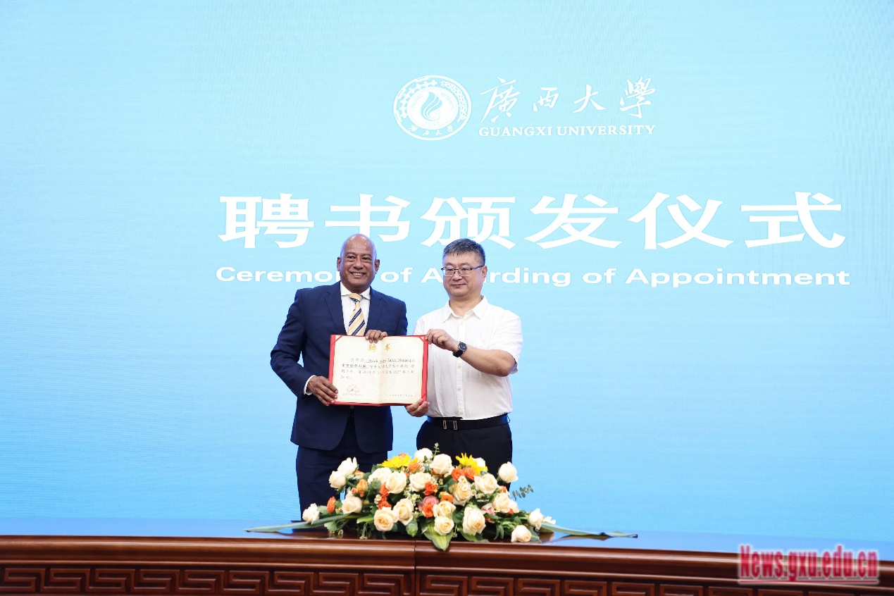 At the conference, GXU and AIADR also held a signing ceremony of a memorandum of understanding (MOU) and an appointment ceremony for visiting professors. In the presence of Tian and Lim, the heads of the International Cooperation and Exchange Department of GXU and AIADR jointly signed the MOU. The two sides will engage in comprehensive collaboration in international arbitration research, personnel training, and curriculum development. Tian also presented appointment letters for visiting professors to four overseas experts: Mary Lim Thiam Suan, Sundra Rajoo, Choong Yeow Choy, and Chen Xiuting.