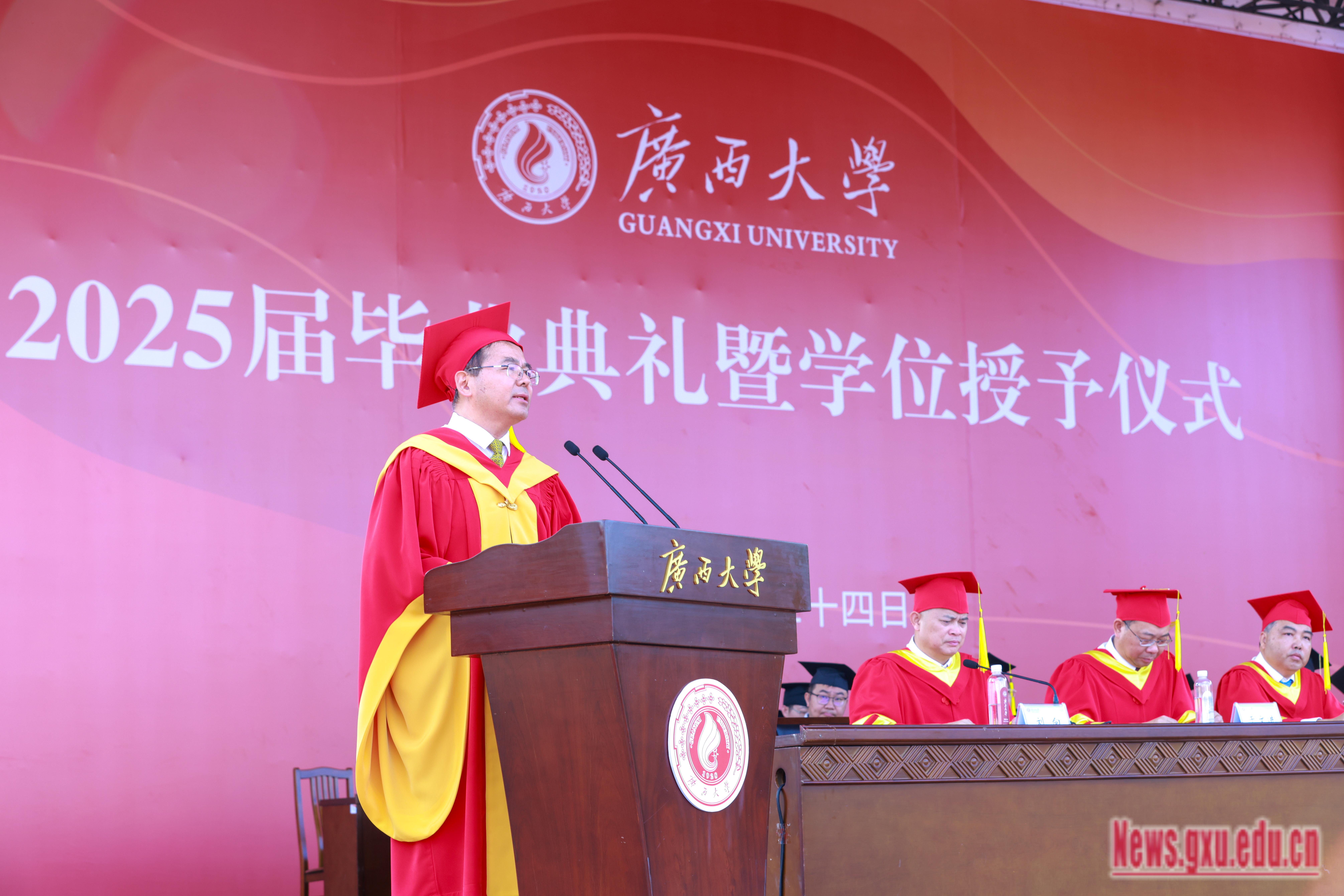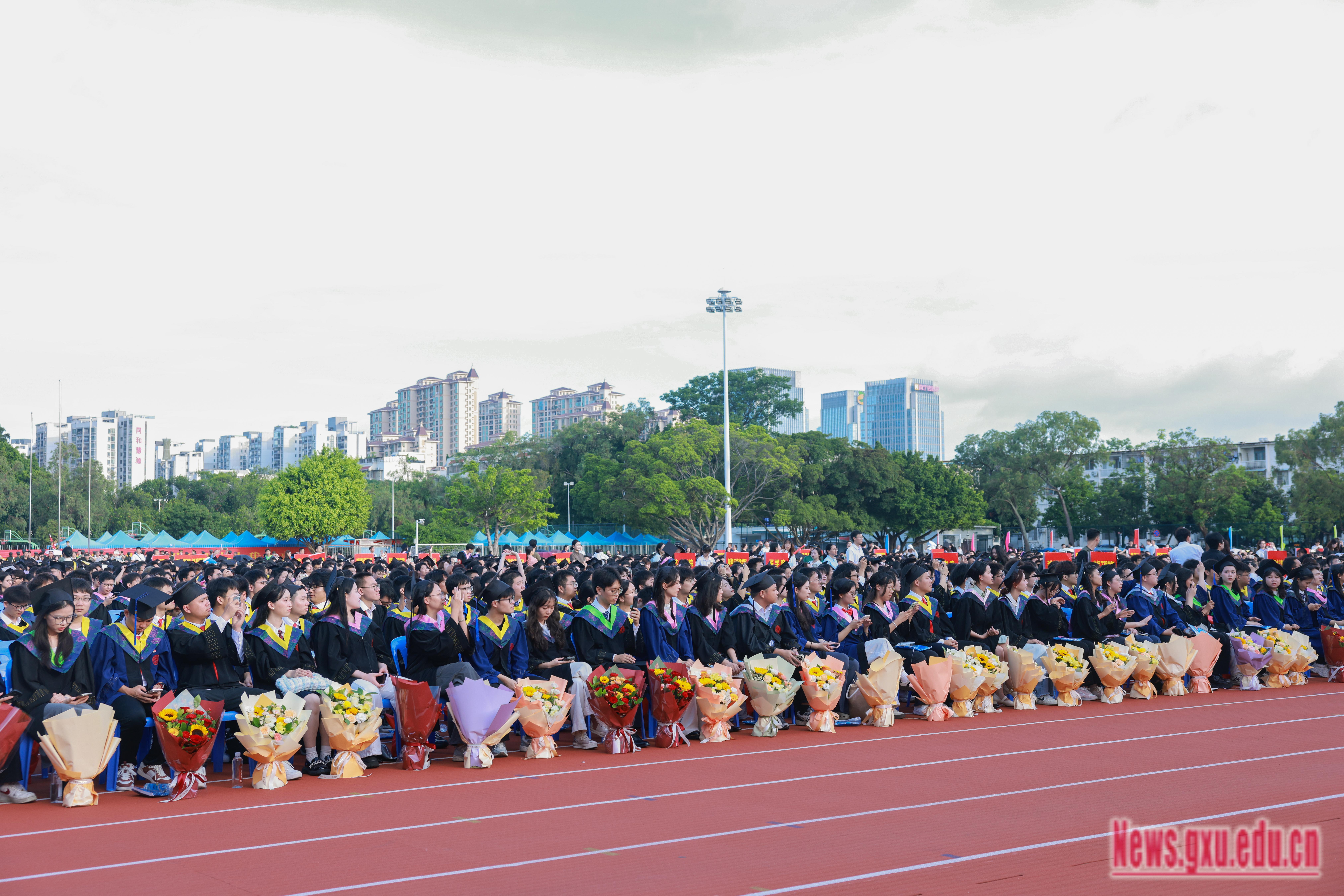 ဇွန်လ ၂၄ ရက်နေ့တွင်ကျွန်ုပ်တို့၏ကျောင်း GXU တွင် ၂၀၂၅ ခုနှစ် အတန်းမှဘွဲ့ရ ၉၇၇၃ ဦး (ဘွဲ့ကြို ၅၀၁၃၊ မဟာကျောင်းသား ၄၅၃၈ နှင့် ပါရဂူကျောင်းသား ၂၂၂ အပါအဝင်) အတွက် ဘွဲ့နှင်းသဘင်အခမ်းအနားနှင့် ဘွဲ့ချီးမြှင့်ပွဲအခမ်းအနားကို အနောက်ဘက် ကျောင်းဝင်း အားကစားကွင်း၌ ကျင်းပခဲ့ပါသည်။ တက္ကသိုလ်ပါတီအတွင်းရေးမှူးနှင့် တက္ကသိုလ်ဘွဲ့အကဲဖြတ်ရေးကော်မတီဥက္ကဋ္ဌ Mr.Li Guozhong ၊ပညာရေးဝန်ကြီးဌာန၏ ပါတီဆက်သွယ်ရေးမှူး Mr.Li Jibing၊ တရုတ်အင်ဂျင်နီယာအကယ်ဒမီ၏ ပညာရပ်ကျွမ်းကျင်သူနှင့် မြို့ပြအင်ဂျင်နီယာနှင့် ဗိသုကာကျောင်းမှ ပါမောက္ခ Mr.Zheng Jielian၊ တရုတ်အင်ဂျင်နီယာအကယ်ဒမီ၏ ပညာရပ်ကျွမ်းကျင်သူနှင့် အသေးစားစက်မှုလုပ်ငန်းနှင့် အစားအသောက်အင်ဂျင်နီယာကျောင်းမှ ပါမောက္ခ Mr.Wang Shuangfei၊ကျောင်းခေါင်းဆောင်များ၊ ကျောင်းဘွဲ့အကဲဖြတ်ရေးကော်မတီဝင်များ၊ နာမည်ကြီး ပညာရှင်များ၊ ဆရာ၊ ဆရာမများနှင့် ဝန်ထမ်းများနှင့် ကျောင်းသားဟောင်းများ အပါအဝင် ကျောင်း၏ ပါတီကော်မတီနှင့် ဒုတိယဥက္ကဋ္ဌ Mr.Liu Xiang တို့က အခမ်းအနားသို့ တက်ရောက်ကြသည်။