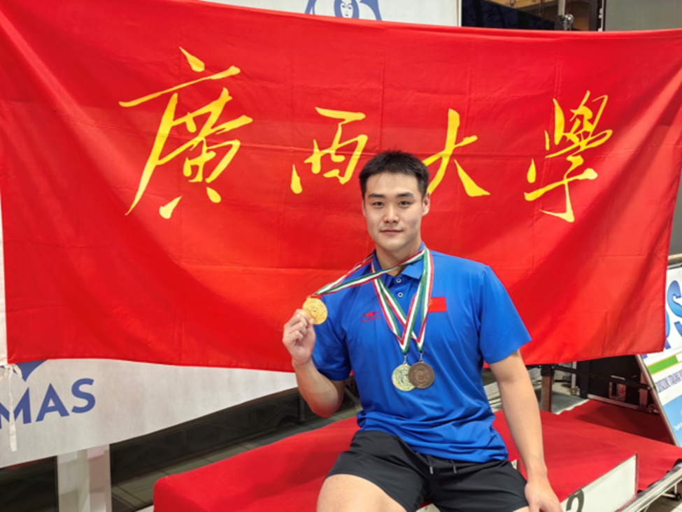 និស្សិតសាកលវិទ្យាល័យក្វាងស៊ីលោក Guan Hanzhi បានឈ្នះមេដាយមាសវគ្គផ្ដាច់ព្រ័តក្នុងកម្មវិធី CMAS 18th World Cup Finswimming Indoor Golden