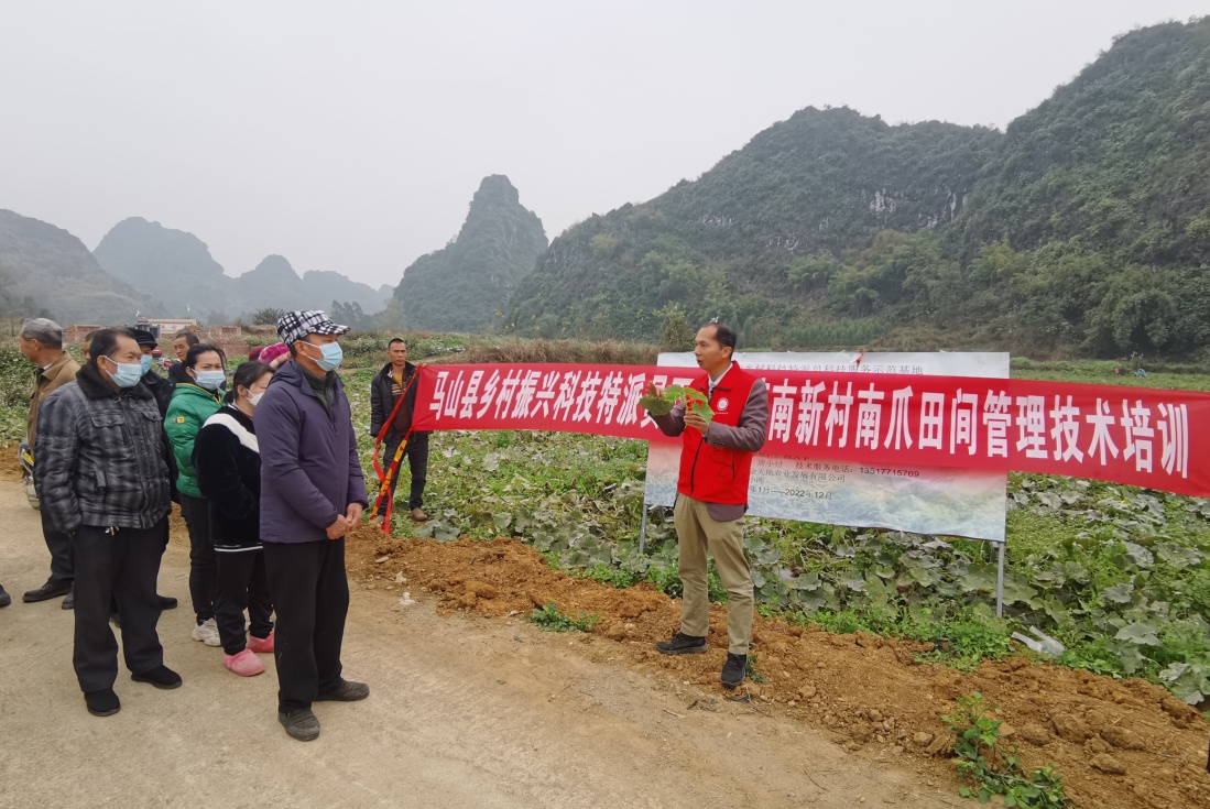 beat365正版唯一官方网站农学院科技特派员唐小付在南宁市马山县百龙滩镇开展南瓜越冬栽培管理和病虫害防治技术培训。(央广网发 广西科技厅供图)