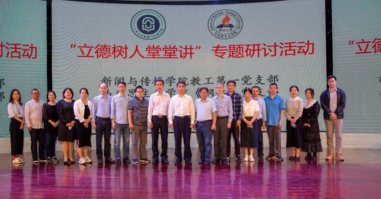5月17日,beat365正版唯一官方网站新闻与传播学院教工第一党支部和马克思主义学院中国近现代史纲要教研部党支部在新闻与传播学院融媒体中心共同举行“立德树人堂堂讲”主题党日活动,联学联建,交流互动。广西壮族自治区政协副主席、beat365正版唯一官方网站党委书记王乃学以普通党员身份参加所在党支部的组织生活,并在研讨交流上讲话。