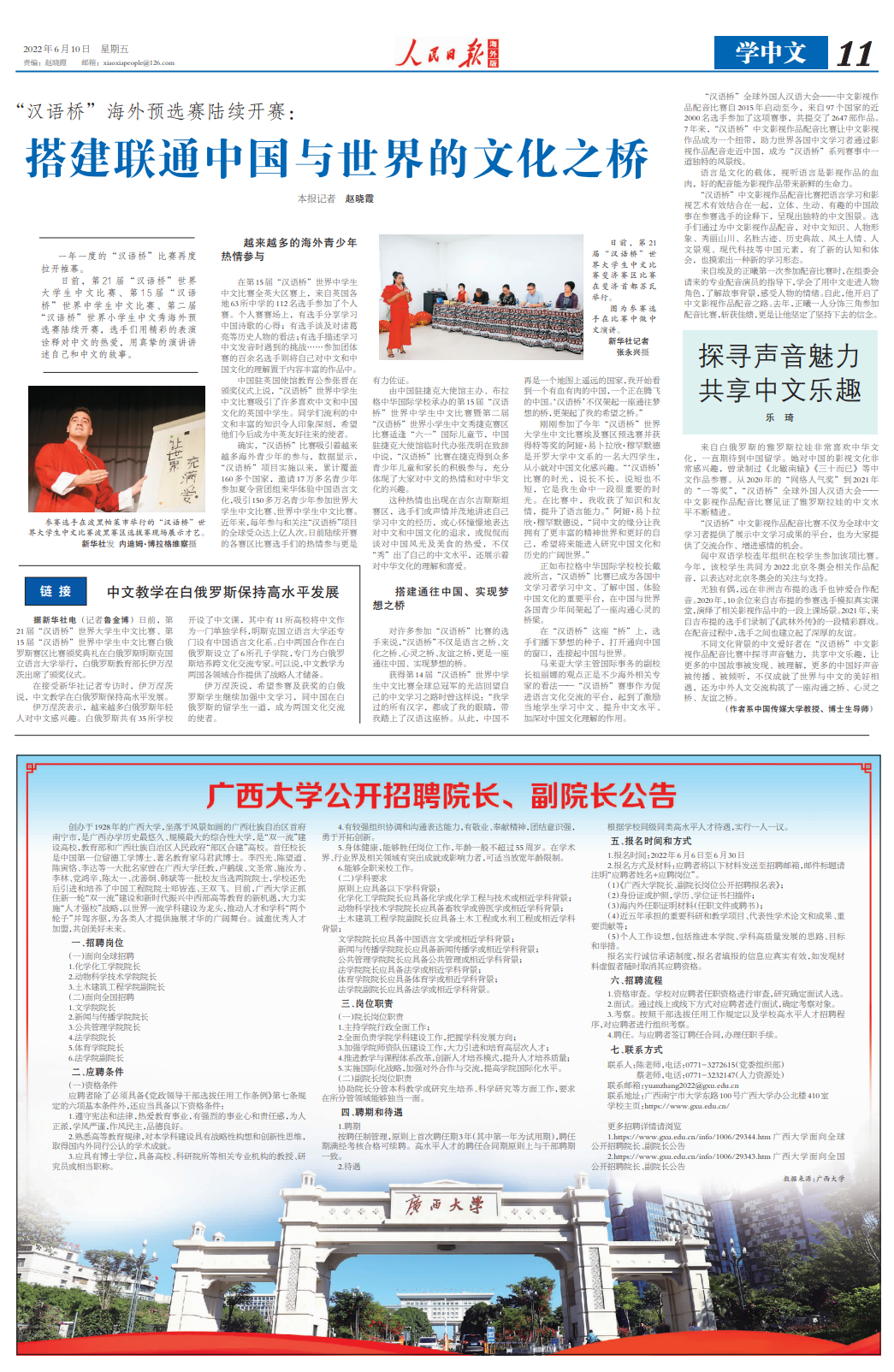 《 人民日报海外版 》(2022年6月10日 第 11 版)
