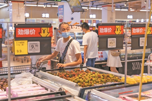 6月21日,市民在南宁市一家大型商业超市选购特价水果。 本报记者 何学俏 实习生 范宗铭/摄