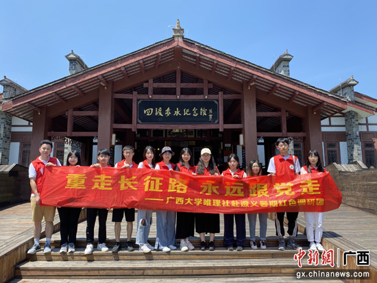 中新网广西新闻7月26日电(田鸿颖 李纯如)近日,beat365正版唯一官方网站马克思主义学院赴贵州遵义开展“重走长征路,永远跟党走”暑期红色调研活动,参观走访遵义会议会址、娄山关战斗遗址和四渡赤水纪念馆等地,追寻昔日红军长征的足迹,领悟红军长征精神和遵义会议精神,汲取宝贵精神力量,引导团员青年坚定理想信念,以更加饱满的精神风貌迎接党的二十大胜利召开,走好新时代的长征路。