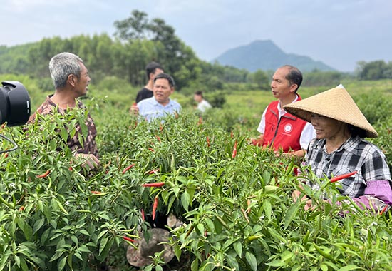 唐小付(右二)到周鹿镇武平村指导指天椒生产。聂圣贤摄
