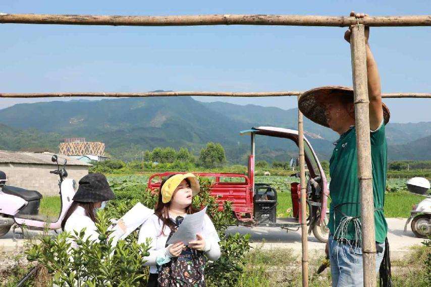 在韦健谋带领下,博士团实践队前往融安县长安镇大巷村和河勒村开展产业调研。走访中,队员们了解到当地目前呈现少数农户规模化种植和多数农户零碎种植并存的现象,两者之间的种植技术、农业经营收入等情况存在着较大差异。对于当地金桔产业的发展现状,在调研中,农户总体反映出市场波动性大、初级市场价格低、病虫害防治技术不足等问题较为突出。队员们表示,应当运用所学专业知识,走进农村、走近农民,深入田间地头,解决农业生产实际问题,积极参与到乡村振兴的伟大事业中去。