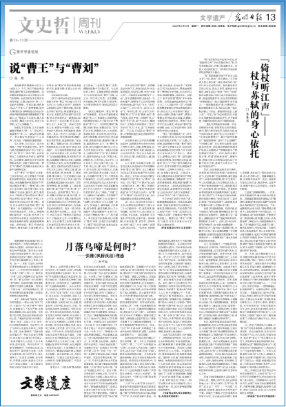 “杖”在苏轼作品中出现70余处,如“倚杖听江声”“竹杖芒鞋轻胜马”等,多写其拄杖而行,并集于贬谪黄州后。但前人对此探究较少,下面则对苏轼拄杖背后的深意予以揭示。