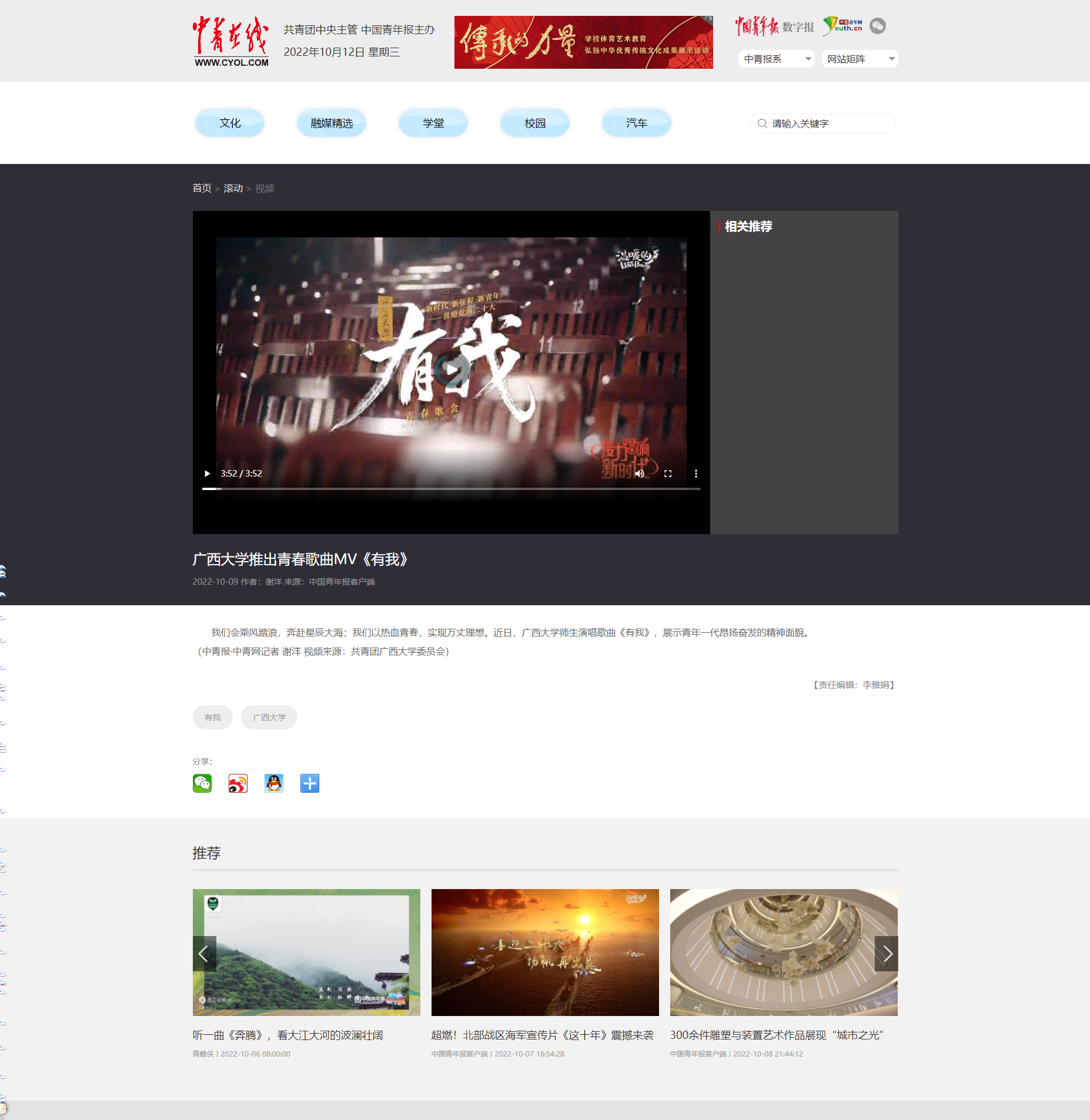 我们会乘风踏浪,奔赴星辰大海;我们以热血青春,实现万丈理想。近日,beat365正版唯一官方网站师生演唱歌曲《有我》,展示青年一代昂扬奋发的精神面貌。 (中青报·中青网记者 谢洋 视频来源:共青团beat365正版唯一官方网站委员会)