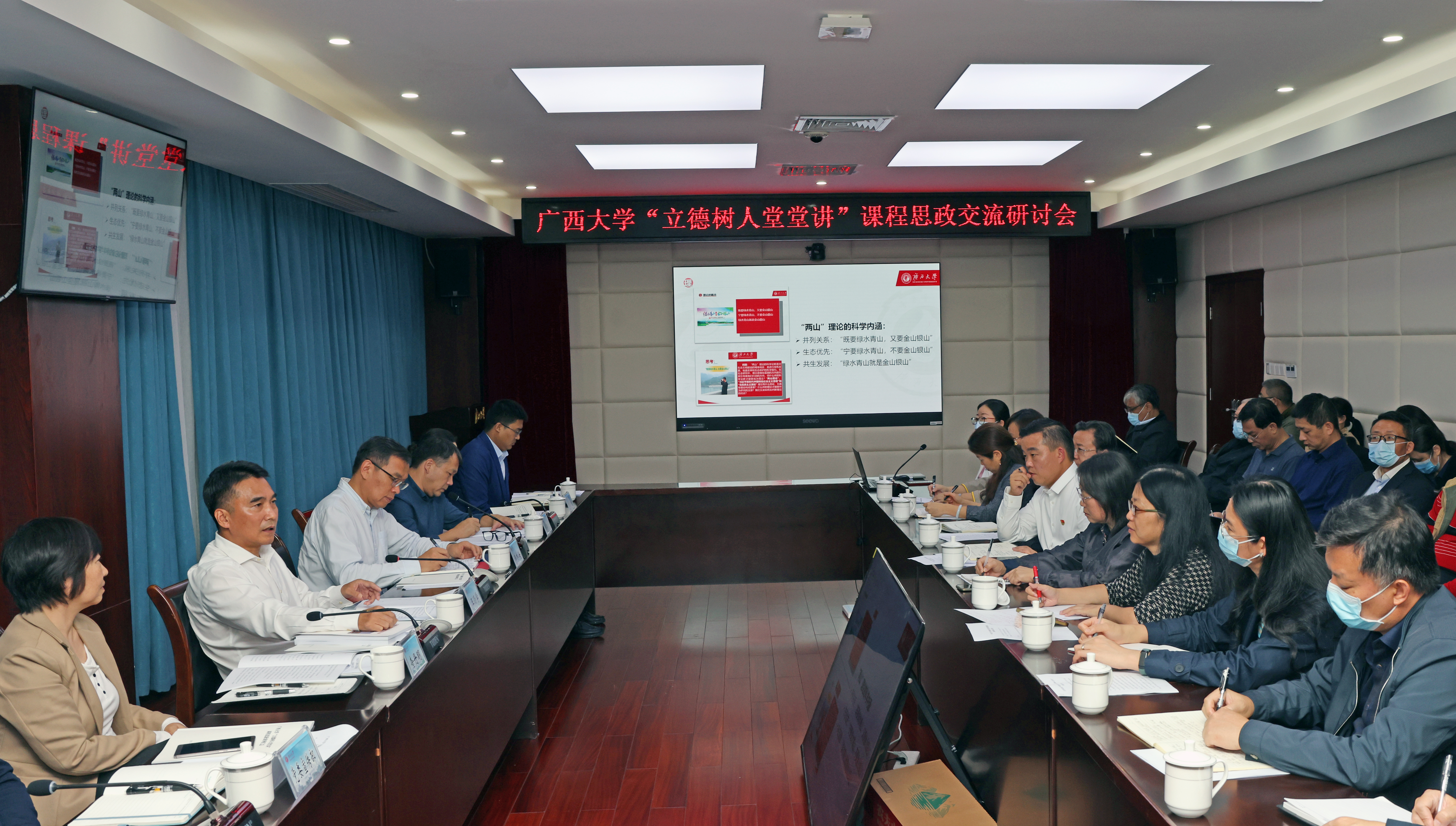 交流研讨会上,土木建筑工程学院副院长常岩军从课程思政的思考、设计与实施和建设成效,新闻与传播学院党委书记唐兴从“立德树人堂堂讲”在新闻传播教育中的实施,马克思主义学院副院长陆秀红从课程思政与思政课程同向同行、共赴协同育人等方面进行课程思政典型经验交流。资源环境与材料学院高伟老师以“木与水上之行——郑和七下西洋”、公共管理学院聂鑫老师以“‘理论’点的思政元素”、农学院王爱勤老师以“植物多样性”、文学院阳静老师以“苏轼的典型意义研究”、林学院符韵林老师以“红木不腐不朽” 、电气工程学院胡立坤老师以“PID调节原理”等案例作了经验分享。老师们立足所授课程,围绕“事、理、德、人”主线,展示了在专业课教学中融入思政立德的具体思路和做法,引起与会教师的共鸣,大家共情共景、思想碰撞、借鉴启发,一场课程思政座谈交流会议变为了一个生动的立德树人“大课堂”。