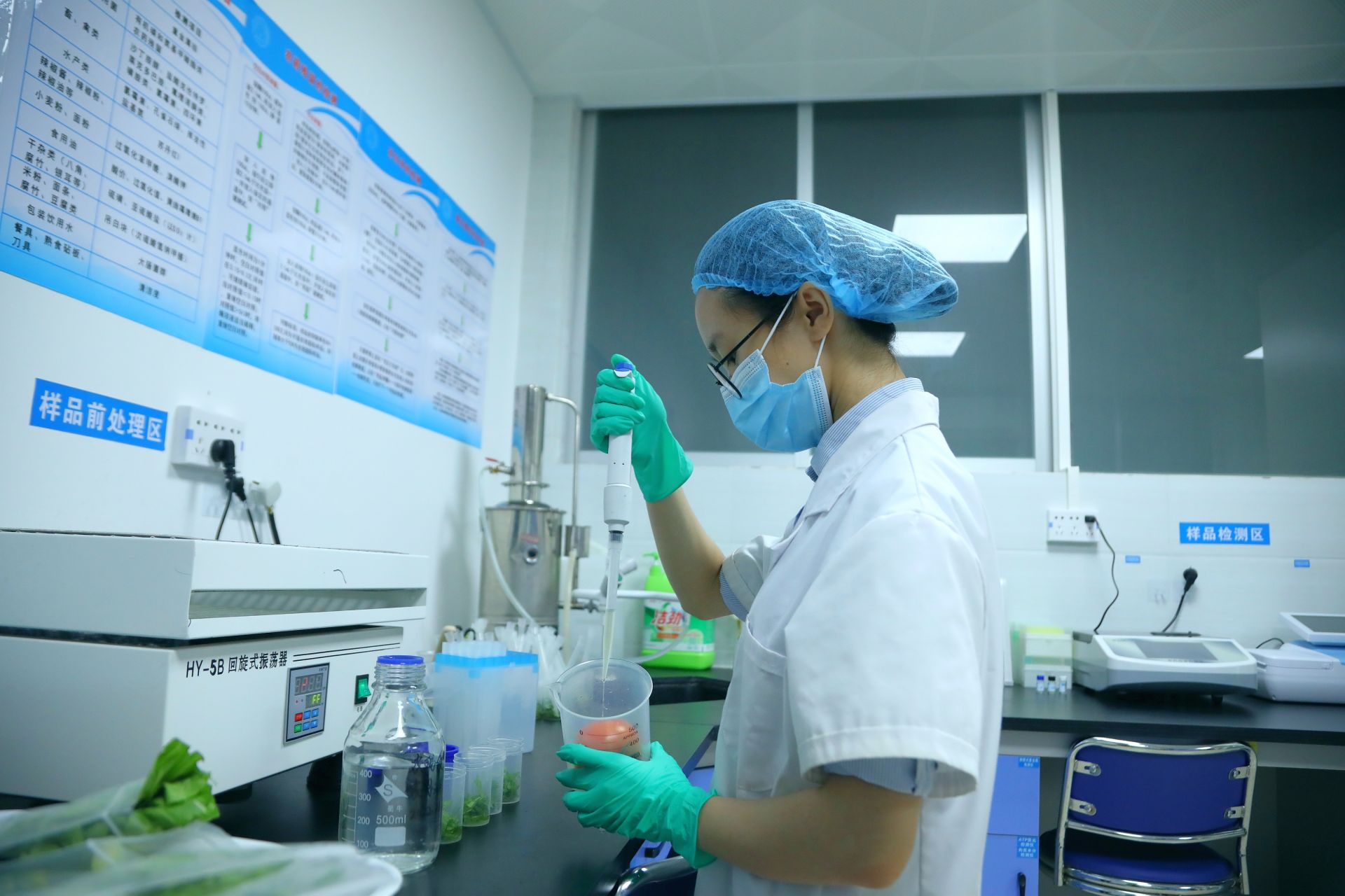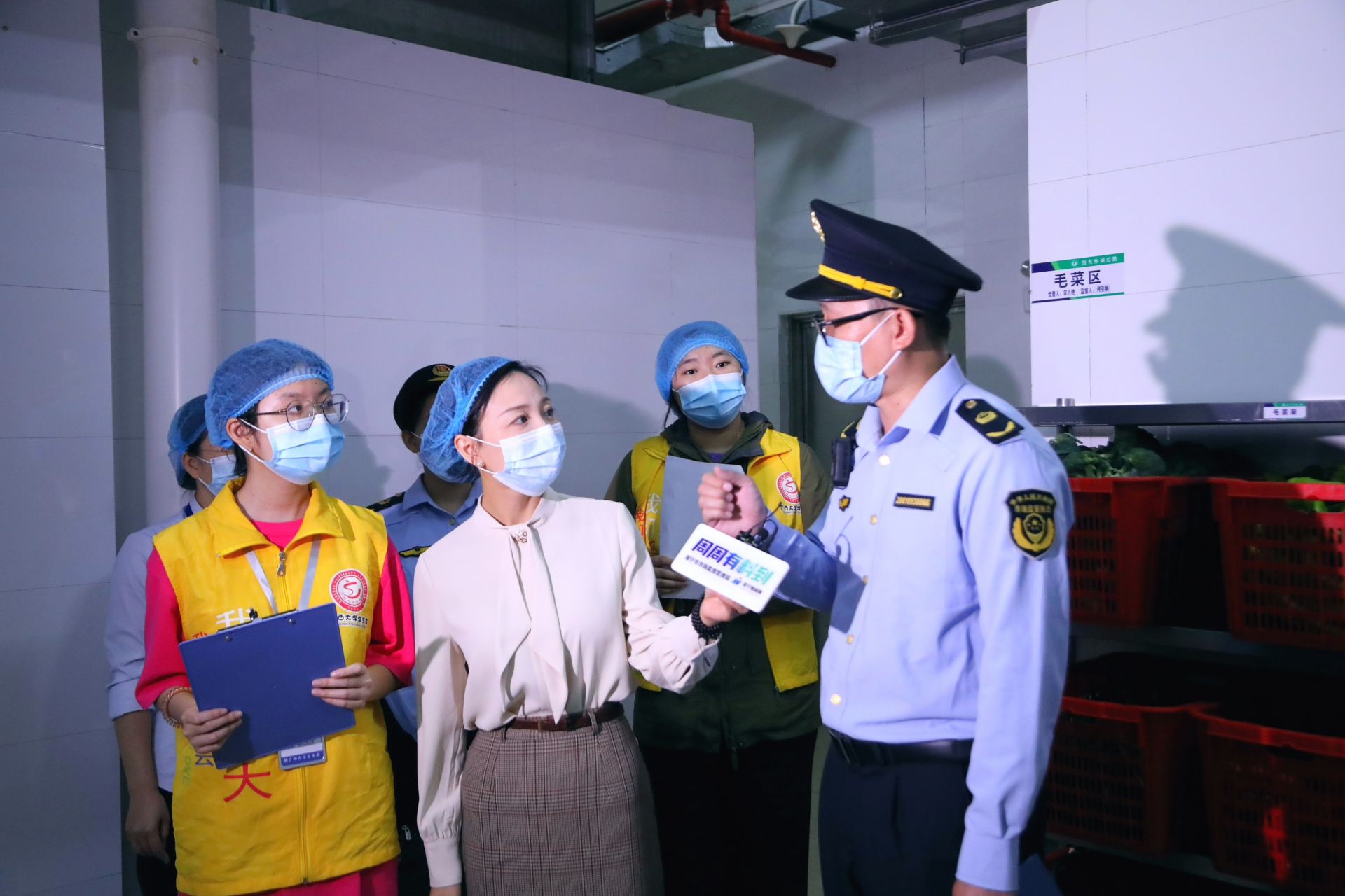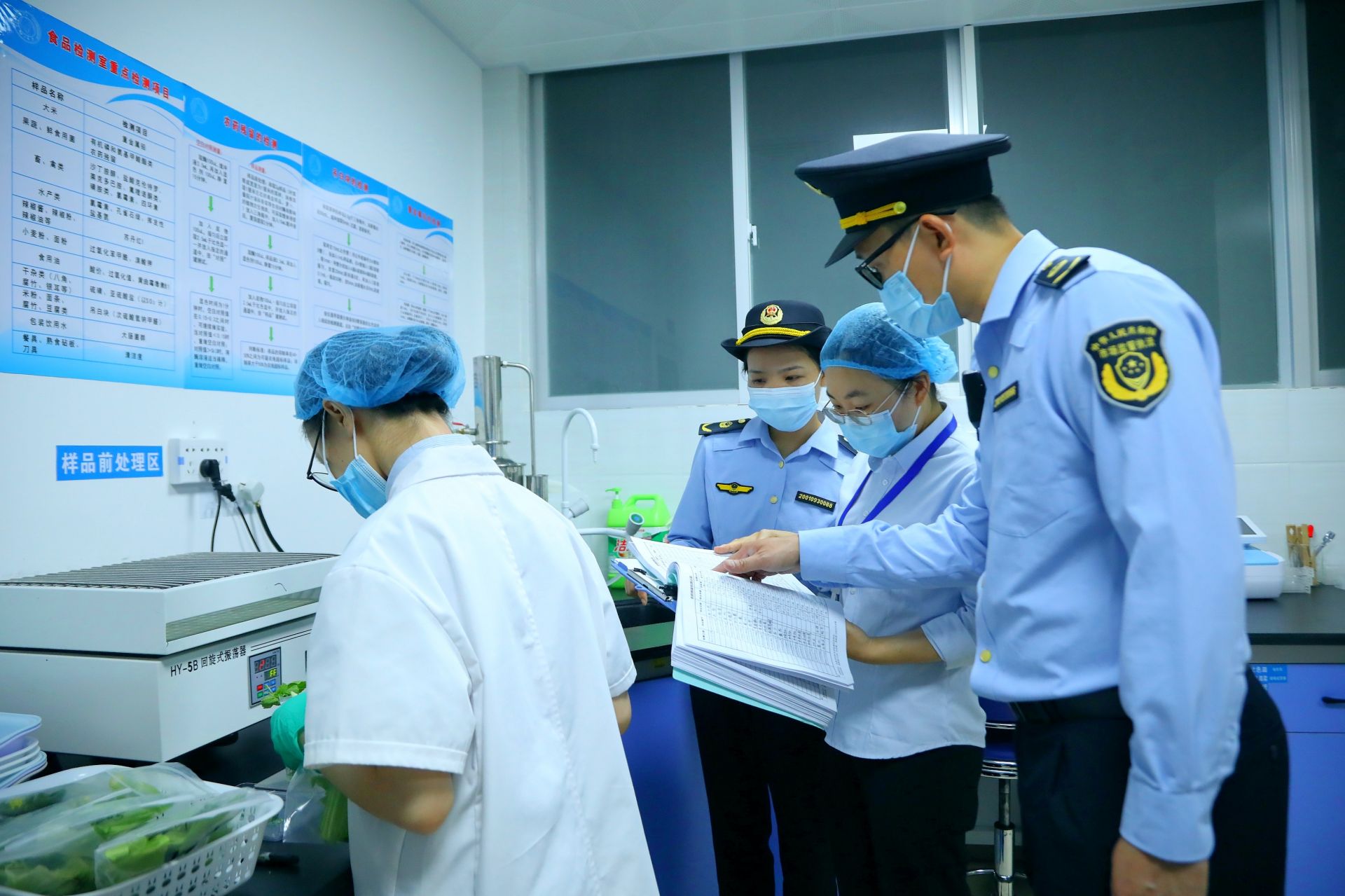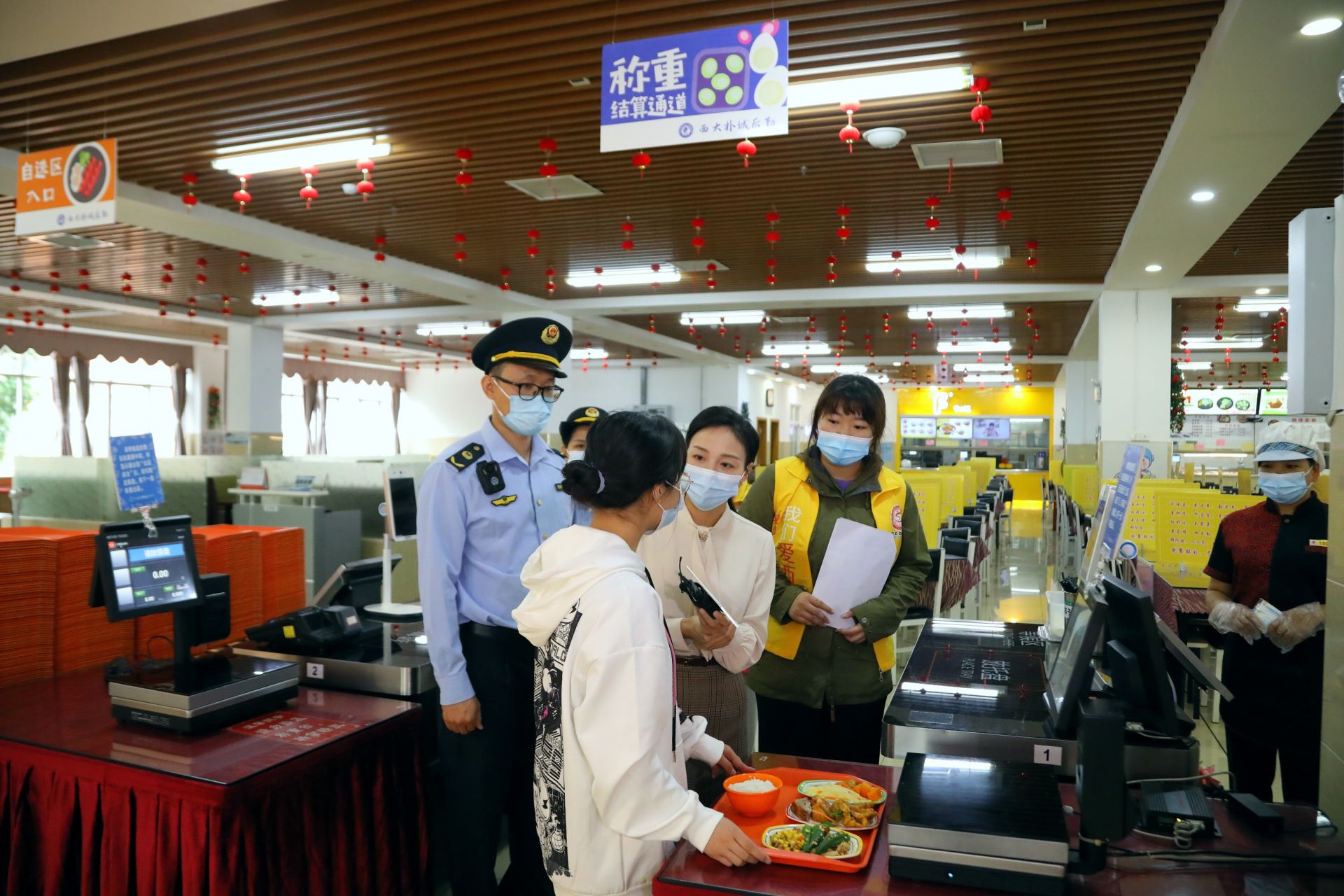南宁市市场监管部门工作人员检查食品检测记录。广西西大朴诚后勤产业服务有限公司工作人员表示,食堂工作人员需要在每天供应商送货时取样,按要求检测农残、兽药残留等指标,有效保障蔬果和肉类的质量,如不合格,立即退货,绝不允许不达标的蔬果和肉类流入食堂。