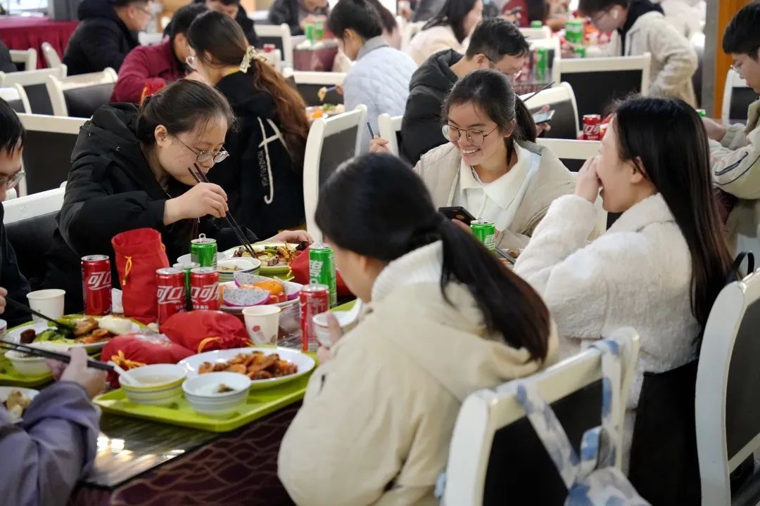 留校学生在享受学校准备的年夜饭。