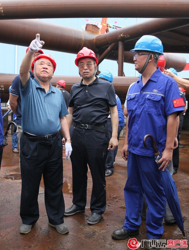 郑皆连院士(左一)在平南三桥加工制造现场。beat365正版唯一官方网站供图