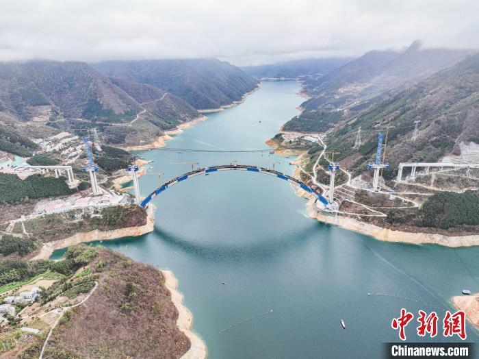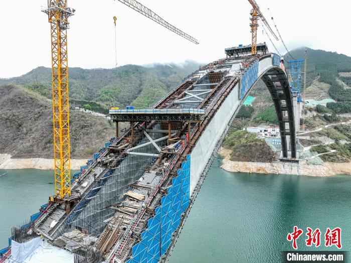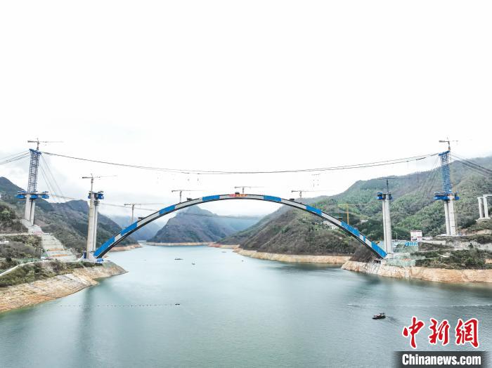 据介绍,为保证高质量完成吊装任务,各参建单位在专家指导下,加强科技创新,研发出数字化的桥梁用缆索起重装备、“过程最优,结果可控”的一次张拉扣索索力优化计算方法等系列装备和施工工艺,总结出一套山区大跨度钢管混凝土劲性骨架悬臂拼装技术,将吊装线型等精度控制在毫米级范围内,有效解决大跨度拱桥拱圈线形控制难题,为大跨拱桥建造提供有力的技术支撑。