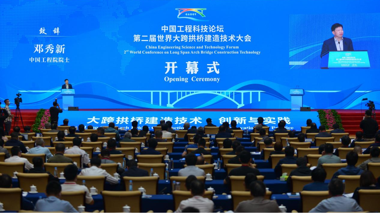 中国工程院副院长、中国工程院院士邓秀新在致辞中表示:“此次大会提供了研讨大跨拱桥建造前沿技术思想碰撞的平台,相信在中国桥梁工程科技工作者的不懈努力下,将会把拱桥科技推向新的更高境界,让中华拱桥更好造福世界。”