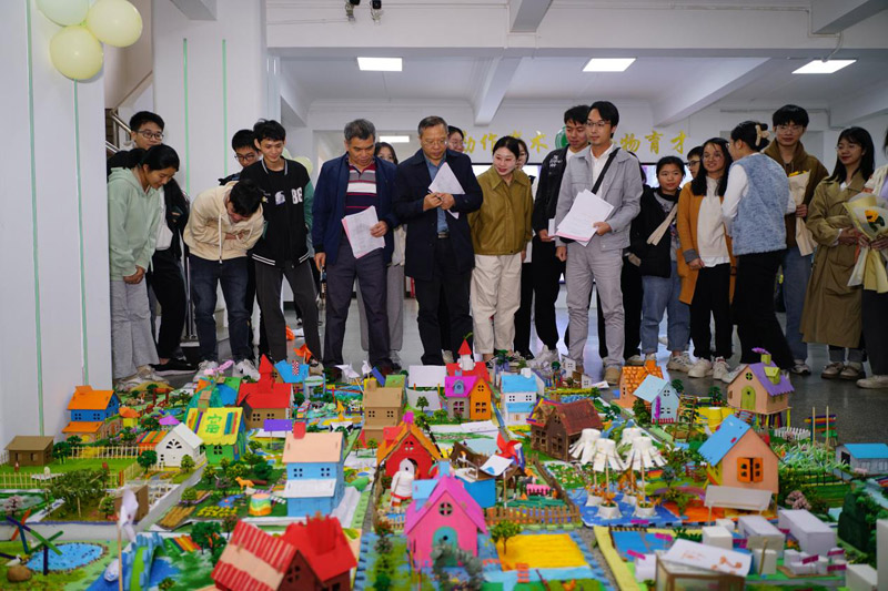 老师点评农庄模型作品。潘康瑞摄