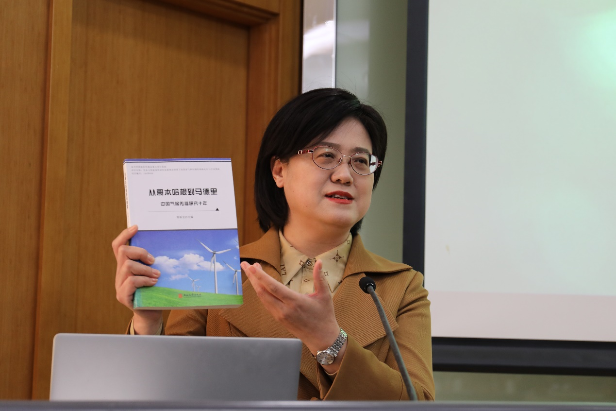 中国人民大学新闻与社会发展研究中心执行主任、中国人民大学新闻学院副院长、中国新闻史学会会长王润泽在致辞中对郑保卫教授和气候传播项目表示致敬和感谢。她指出中国气候传播项目中心的气候传播实践是“顶天立地”的,一方面它紧紧围绕国家战略意图,以习近平生态文明思想为引领,做了很多政策研究与理论引领工作;另一方面它扎根中国大地,在中国气候传播具体实践的基础上产出了许多成果。郑老师是新闻与社会发展研究中心原主任,他的工作为我们留下了许多宝贵学术资源和精神财富。我们会坚持把气候传播项目做下去,努力团结一批新骨干、新成员,共同把项目做大做强,使其成果的辐射面更大更广。
