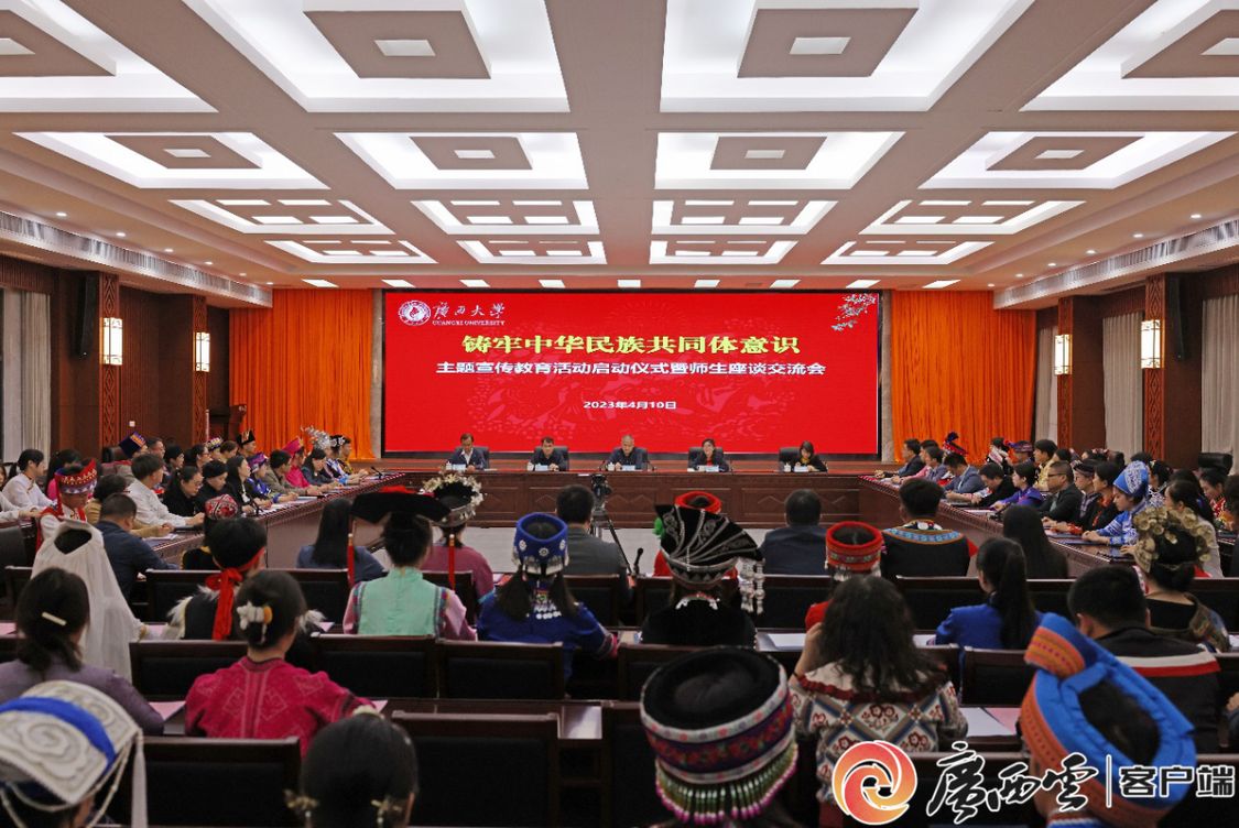“我在一颗石榴里看见我的祖国,硕大而饱满的天地之果······”4月10日,在beat365正版唯一官方网站君武楼玉林厅,48位不同民族的师生代表,用深情的诗朗诵拉开了beat365正版唯一官方网站2023年铸牢中华民族共同体意识主题宣传教育活动启动仪式暨师生座谈交流会的序幕。全校26个学院的100余名师生代表在壮族“三月三”即将到来之际,身着民族盛装,欢聚一堂,共唱民族团结之歌、共享民族进步之果、共话民族工作之策。