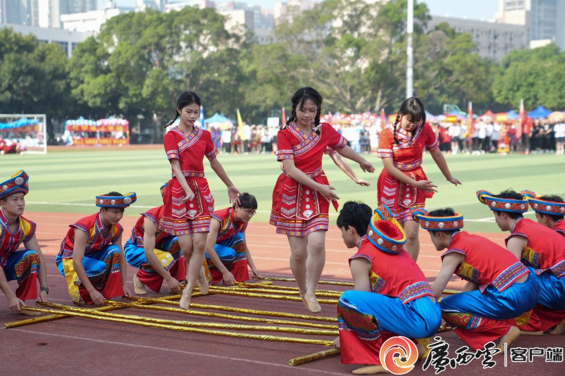 抢糍粑、高脚马、抛绣球、射箭、打陀螺、壮语传话筒……师生们在活动现场亲身体验了一把少数民族传统竞技项目,组队比拼、热火朝天,呐喊助威声响彻校园;而在民族文化体验区,师生们不仅参观了民族饰品展和民族文化长廊,更是抓住机会穿着少数民族服饰拍照打卡,感受民族文化的独特魅力;此外,在参与丰富多彩的游戏过程中,师生们还赢得了精美的民族特色礼品,校园里一片欢声笑语、其乐融融。