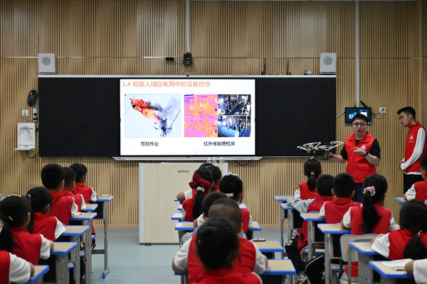 在“硕博科普进课堂第一讲——电力科普宣传”中,电气工程学院2021级博士张恒和支教团成员为华润小学四年级的同学们上课,向同学们介绍了电的产生,并进行有关电力的趣味小实验。接下来,支教团还将更具针对性地为同学们持续策划电力安全教育、无人机与机器人科普等一系列精品课程。