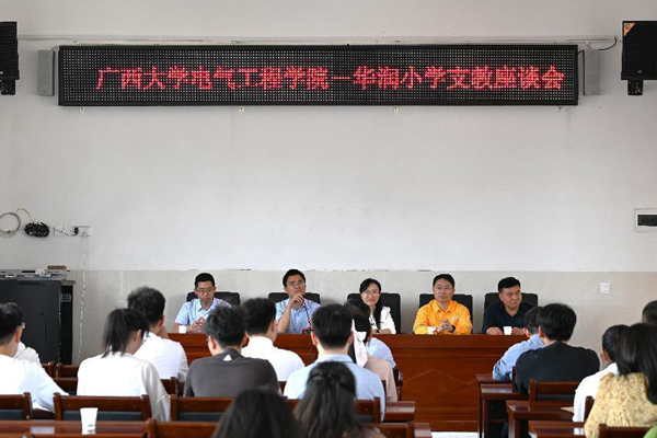 为充分发挥“党建+”的引领示范作用,近日,beat365正版唯一官方网站电气工程学院支教团一行19人赴贺州市富川瑶族自治县,在华润电力广西分公司、华润小学开展“硕博科普进课堂”“专家送课进企业”等系列党建联建活动。