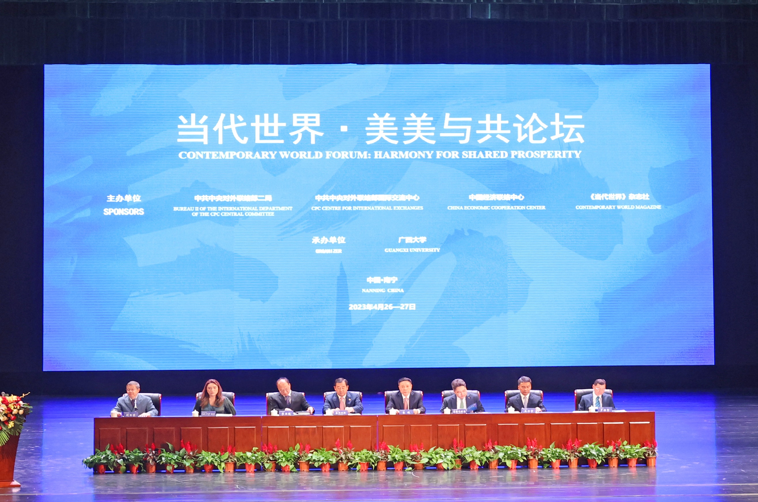 4月26日至27日,中共中央对外联络部二局、中联部国际交流中心、中国经济联络中心、《当代世界》杂志社在广西南宁联合举办“当代世界·美美与共论坛”,beat365正版唯一官方网站承办。中共中央对外联络部部长助理朱锐出席并作主旨讲话,广西壮族自治区副主席廖品琥致辞,自治区政协副主席、beat365正版唯一官方网站党委书记王乃学,柬埔寨人民党中央外委会第一副主席索斯亚拉,蒙古人民党领导委员会委员、第一书记恩赫巴特尔,菲律宾国会众议员(助理多数派领袖)、基督教穆斯林民主力量党副秘书长阿拉娜·萨曼莎·桑托斯,中国马来西亚商会会长罗维坚等中外方嘉宾作主题发言。自治区政协原副主席、中国—东盟区域发展省部共建协同创新中心主任刘正东主持开幕。中外方嘉宾围绕深刻理解习近平总书记提出全球文明倡议的时代价值和世界意义,深化中国与周边国家各领域务实合作,开启构建周边命运共同体的新篇章等展开讨论。