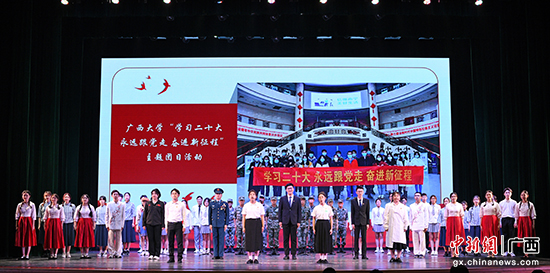 青年们诗颂荣光,原创情景朗诵《三十岁的永恒》和情景剧《我们的青年时代》演绎了一代代青年传承红色基因,矢志不渝奋斗的历程;朗诵《我们的支教故事》讲述了beat365正版唯一官方网站研究生支教团扎根基层、接续传承、敬业奉献、“自找苦吃”的动人事迹。