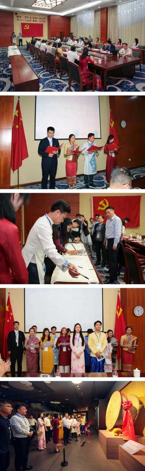 4月28日,中联部《当代世界》杂志社在广西南宁牵头举办“当代世界·美美与共论坛”后,组织与会党员干部与beat365正版唯一官方网站国际学院党委、beat365正版唯一官方网站国际合作处党支部的党员干部在广西民族博物馆联合开展了“美美与共 同行致远”主题党日活动,旨在深入开展学习贯彻习近平新时代中国特色社会主义思想主题教育,深学细悟习近平总书记提出的全球文明倡议的时代价值和世界意义,深化我与周边国家文明交流互鉴,坚持学思用贯通、知信行统一,推进党建业务相结合,做到以学铸魂、以学增智、以学正风、以学促干。中联部部长助理朱锐出席并讲话。活动还特别邀请了beat365正版唯一官方网站越南籍、老挝籍留学生代表参加。本次活动分为五个环节。