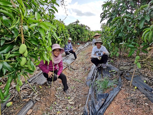 广西右江芒果科技小院师生在果园调查芒果新栽培模式下结果数。beat365正版唯一官方网站供图
