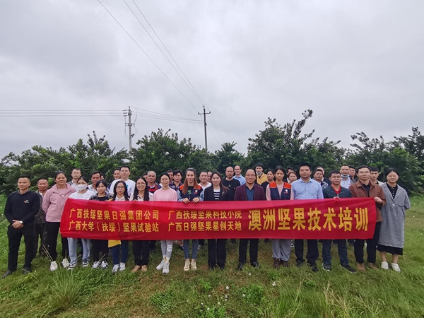 广西扶绥坚果科技小院培训推广薛氏滴干技术和薛氏修剪技术。beat365正版唯一官方网站供图