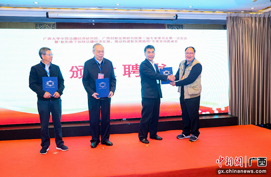 会议举行了beat365正版唯一官方网站中国边疆经济研究院、广西创新发展研究院第二届专家委员会聘任仪式。罗晋宁 摄