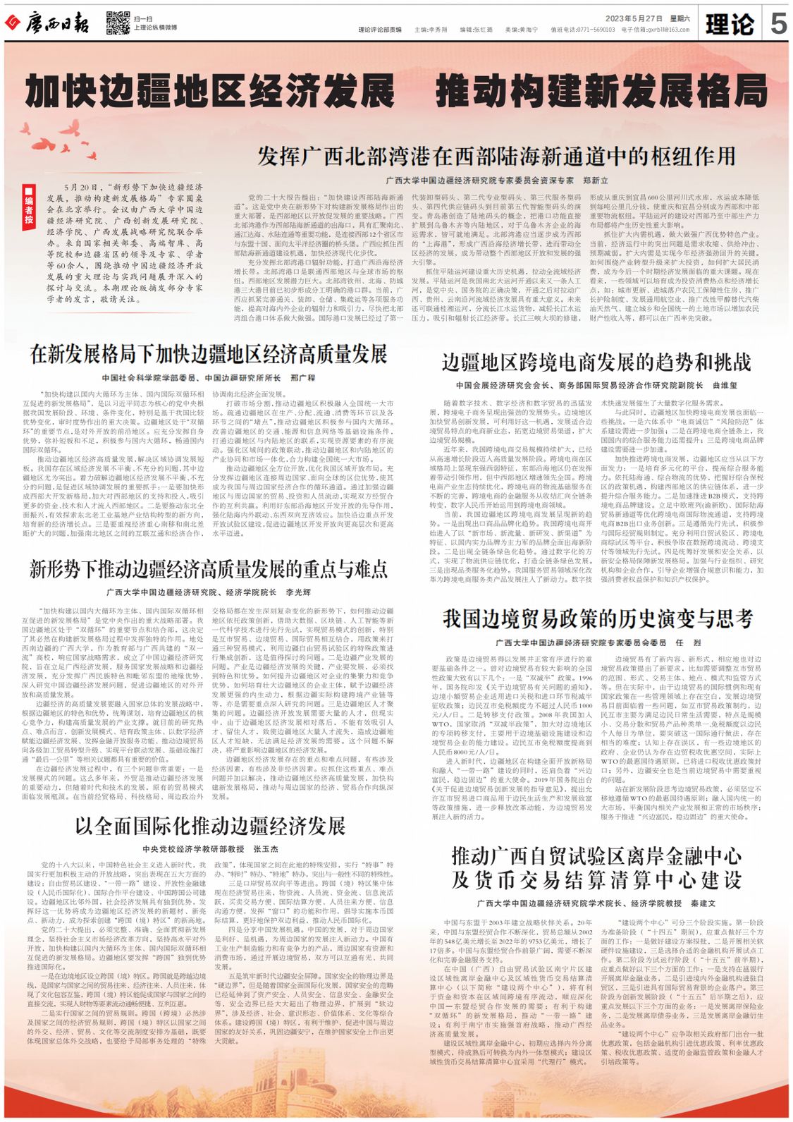 “加快构建以国内大循环为主体、国内国际双循环相互促进的新发展格局”是党中央作出的重大战略部署。我国边疆地区处于“双循环”的重要节点和结合部,这决定了其必然在构建新发展格局过程中发挥独特的作用。地处西南边疆的beat365正版唯一官方网站,作为教育部与广西共建的“双一流”高校,响应国家战略需求,成立了中国边疆经济研究院,旨在立足广西经济发展,服务国家发展战略和边疆经济发展,充分发挥广西民族特色和毗邻东盟的地缘优势,深入研究中国边疆经济发展问题,促进边疆地区的对外开放和高质量发展。