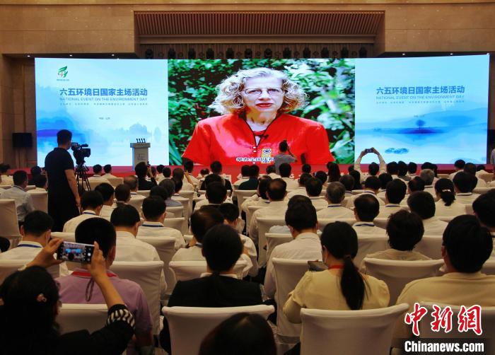 联合国环境规划署执行主任英格·安德森通过视频致辞。 赵晓 摄