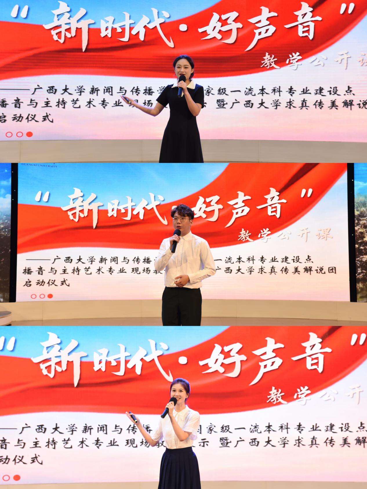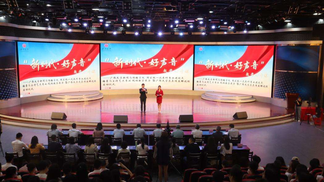 6月8日,beat365正版唯一官方网站新闻与传播学院国家级一流本科专业建设点播音与主持艺术专业,以“新时代·好声音”为主题,在学院融媒体中心举行教学公开课现场教学展示活动。校团委和学院领导、播音业界一线专家、文博界“五好”讲解员代表,以及学院师生共计200余人到现场观摩。