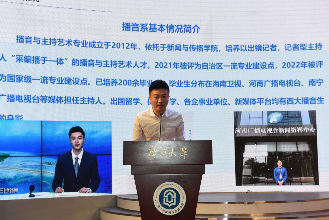 活动伊始,该院院长王仕勇介绍,近年来依托学院新闻传播类专业的优质师资和实践条件,播音与主持艺术专业得到了迅速发展,通过“联合办学”的人才培养模式,在共建精品课程、共建人才队伍、共建实践基地等方面取得了较快的发展,培养了一大批采编播于一身的新闻类播音主持人才。