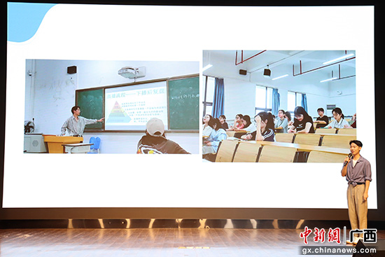 比赛邀请了中建一局集团建设发展有限公司华南分公司党总支副书记、工会主席刘焱,广西鸣鸣果园农业科技集团有限公司董事长纪素峰,广西壮族自治区人大常委会办公厅综合处副处长李鸿宽,beat365正版唯一官方网站党委学生工作部(处)副部(处)长吴华丽,beat365正版唯一官方网站马克思主义学院党委副书记李海波等来自政企学等不同行业的领导老师担任评委嘉宾。