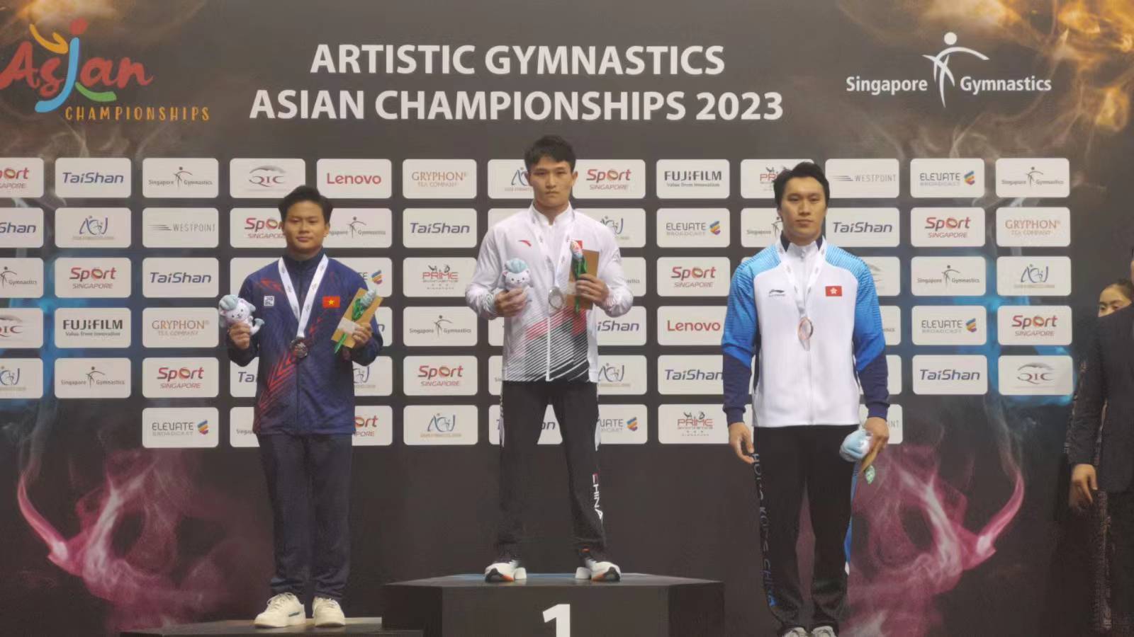 6月15日至18日,第十届亚洲体操锦标赛在新加坡华侨银行室内体育馆举行,beat365正版唯一官方网站体育学院学生兰星宇代表国家体操队出征比赛,获得男子团体和男子吊环冠军。