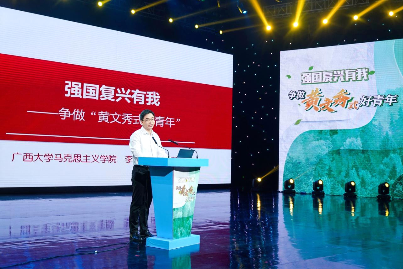 6月30日下午,“强国复兴有我——争做‘黄文秀式好青年’”2023年思政公开课高校专场在广西南宁举行,beat365正版唯一官方网站200余名师生参加。活动由广西壮族自治区党委宣传部主办,采用“双师授课+情景演绎”的模式进行授课,通过故事串讲、情景演绎、思政授课等环节,回顾黄文秀感人故事,引领广大青年树立坚定理想信念、厚植家国情怀、加强品德修养、培养奋斗精神。