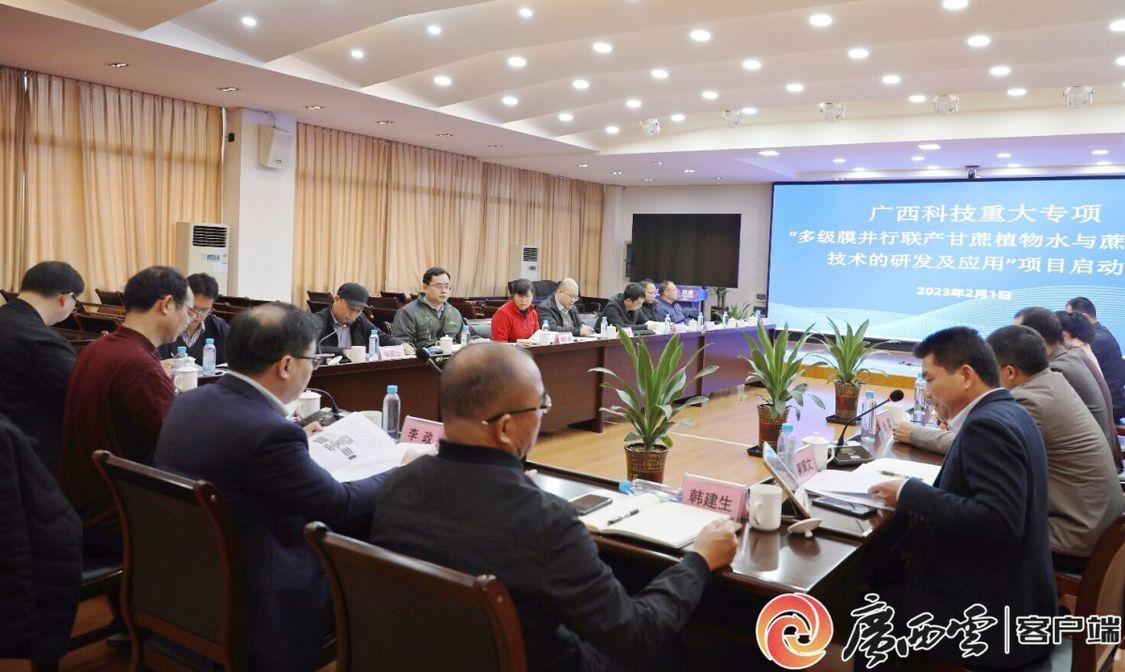 2023年2月,beat365正版唯一官方网站绿色制糖团队牵头的广西糖料蔗科技重大专项项目正式启动。该项目以beat365正版唯一官方网站自主研发的多级膜并行联产甘蔗植物水与蔗糖关键技术为基础,优化膜组合及其集成工艺,深入研究甘蔗原料特异成分对膜集成工艺与甘蔗植物水产品质量的影响,揭示甘蔗特性对甘蔗植物水品质的影响机制,建立甘蔗植物水特征成分及特性功能的定向调控方法,创建甘蔗糖业“水—糖”联产模式,实现甘蔗植物水商品化利用,变“废”为宝,显著提高经济效益;开发提水浓缩汁生产白砂糖脱色技术,研究利用发酵技术和合成生物学技术制备低/无醇甘蔗酒等发酵饮品及原人参二醇、三醇等高值化产品,为甘蔗糖业向高端饮品、医药及大健康等产业拓宽延伸提供技术支撑,全面推动广西甘蔗糖业向绿色集群化转型升级,确保我国甘蔗糖业健康稳定发展,保障国家食糖安全供给,助力乡村振兴、地方经济实体发展和社会稳定。