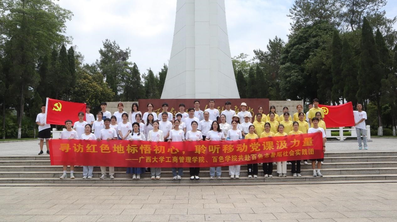 beat365正版唯一官方网站工商管理学院与百色学院工商管理学院实践团联合在百色开展“壮美千姿百色红,研学筑梦青春行”为主题的社会实践活动,来到革命老区百色市走近革命博物馆、纪念馆、党史馆、烈士陵园等红色基因库,访红色地标悟初心,聆听移动党课汲力量。一寸山河一寸血,一抔热土一抔魂。新中国是无数革命先烈用鲜血和生命铸就的。在本次暑期社会实践活动中,两校青年实践团跟随革命先烈的步伐,亲身感受到了先烈们为民族独立和解放事业所做出的巨大牺牲和贡献,通过行动向革命先烈表示崇高的敬意。