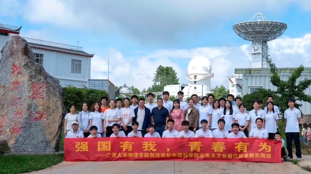 为了加强天文学科建设、培养具有科技前沿视野的一流学生、贯彻落实“科教融合”的人才培养理念,物理科学与工程技术学院分别组织前往云南丽江国家天文台和中国科学院江门中微子实验室进行社会实践活动,并邀请到天文台知名科研专家为学生科普天文知识。在丽江天文观测站,实践团参观了1.6米多通道测光巡天望远镜、2.4米光学望远镜,以及望远镜控制室,在相关专家的讲解下,学生近距离观看了望远镜的工作方式;在丽江天文观测站倾听了主题为“地外生命漫谈与类星体、活动星系核”的科普学术报告;在中国科学院江门中微子实验室,学生近距离参观并了解国家大科学装置的运行原理和建设进展,聆听了中国科学院江门中微子实验与大亚湾反应堆中微子实验的主题报告。在本次社会实践活动中,学生们切身了解了天文领域的知识,深刻感受到了天文行业的魅力,领悟到做好科研的必要条件是有吃苦耐劳的决心和坚韧不拔的毅力,对个人未来发展方向更加确定。他们纷纷表示将更有信心、更富激情地投入到天文领域中去。“我们的征途是星辰大海,但我们更要脚踏实地”,这是丽江天文台实践结束后同学们的共同感悟。