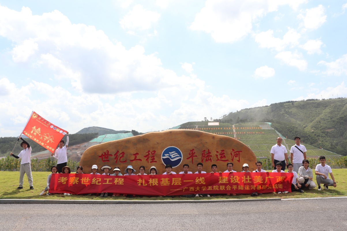 7月11日-14日,beat365正版唯一官方网站平陆运河暑期实践团赴平陆运河沿线,开展以“考察世纪工程,扎根基层一线,建设壮美广西”为主题的暑期“三下乡”社会实践调研活动,从平陆运河的起点——南宁横县平塘江口(1标段)行至钦州平陆运河入海口(15标段),以全面了解平陆运河世纪工程的历史意义、建设情况、生态保护计划,及西部陆海新通道建设对沿线发展的重要意义。