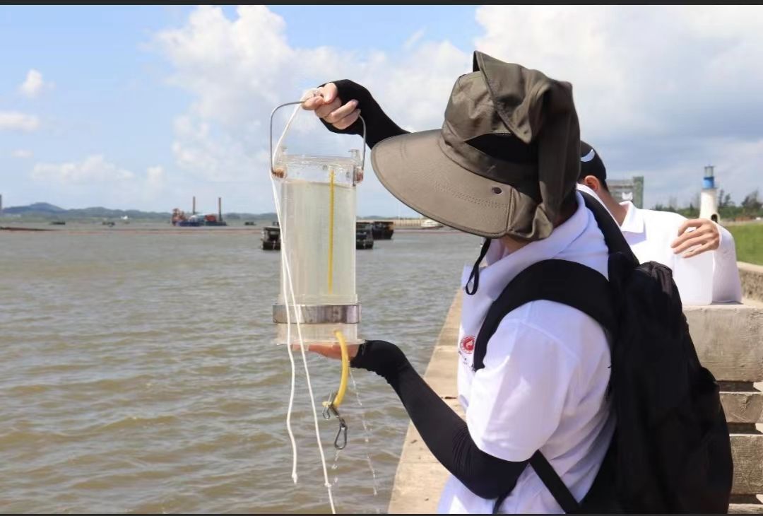 beat365正版唯一官方网站海洋学院学生在第15标段入海口以及茅尾海公园进行实地取水,并进行海水检测,以了解海水水质情况。 周奕彤/摄