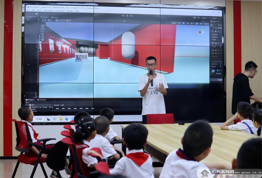 为了进一步推动创新创业同红色文化教育和宣传相结合,促进梧州市万秀区红色文化的传播和发展,实践团在民主社区居委会向少先队员和家长们介绍了团队自制的基于虚拟现实技术的beat365正版唯一官方网站校史场馆虚拟旅游系统。该系统以beat365正版唯一官方网站校史馆为基础构建模型,使用者以第一人称视角浏览场馆,通过人机交互实现参观者与场景的互动,最后通过设置答题模式提升学习成果。活动中少先队员们热情高涨,纷纷举手抢答,并且参与活动的少先队员、家长和工作人员对于这种寓教于乐的模式表示肯定。