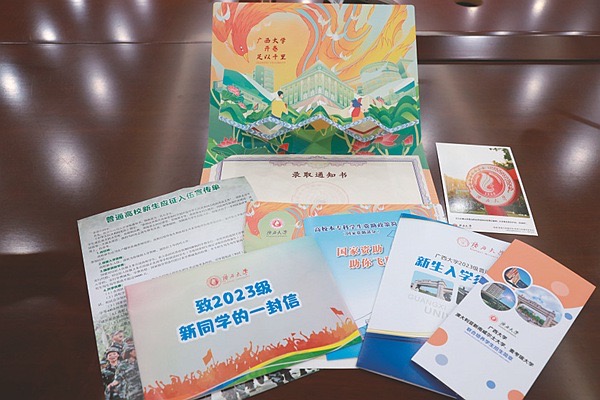beat365正版唯一官方网站教务处副处长彭林欣介绍,随本科生录取通知书一同寄出的,除了明信片,还有2023年新生入学须知、beat365正版唯一官方网站生资助政策简介、普通高校新生应征入伍宣传单、致2023级新同学的一封信、新生行李标签等材料。