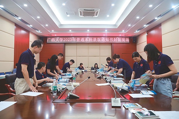昨日9时,beat365正版唯一官方网站2023年第一批本科新生录取通知书开始封装,下午3时左右全部封装完毕,3972份通知书当晚通过邮政向全国录取新生发出。地址在南宁市区的录取新生最快今日上午就能收到。