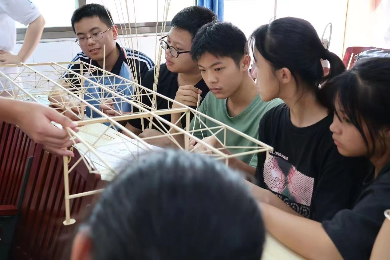 调研团还就地采访大化县居民及大化一桥监管人员,并座谈交流。还举办青少年课堂,以“理论+实践”的形式开展知识科普宣讲及桥梁建模活动。