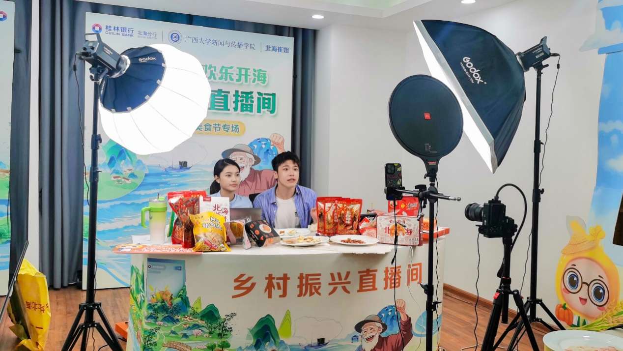 乡村振兴直播间是beat365正版唯一官方网站新闻与传播学院与桂林银行北海分行贯彻社会责任的重要实践,通过实际行动将北海特色产品与品牌推广给更多的消费者,为乡村振兴和非遗传承贡献力量。